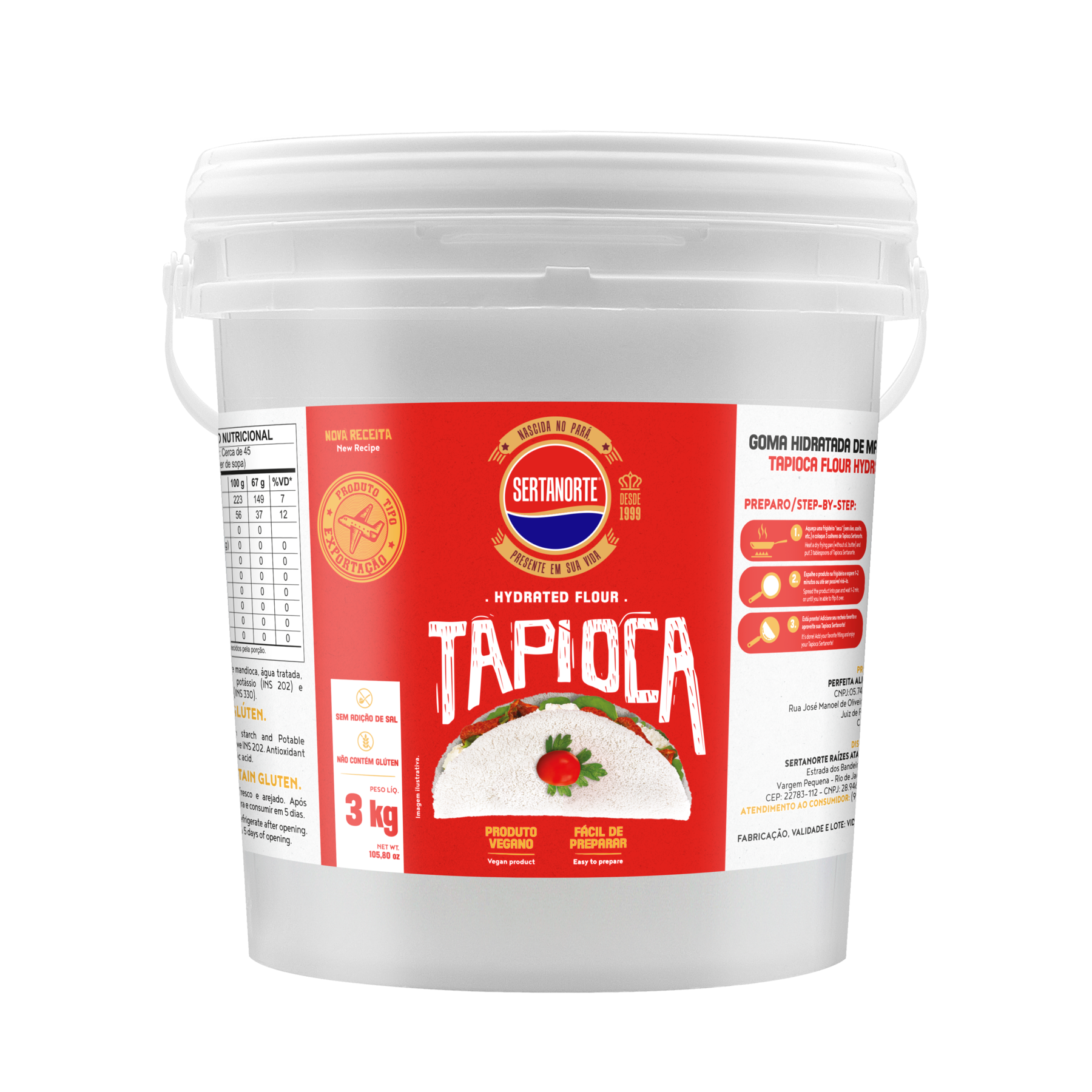 A composição da goma de tapioca é livre de glúten, conservantes, gorduras, lactose e sódio, por isso é muito indicada em dietas saudáveis, reeducação alimentar, redução ou restrição por intolerâncias e para quem busca estar com a saúde em dia.